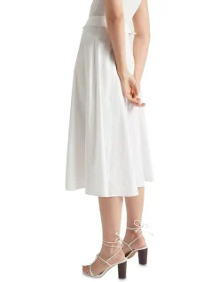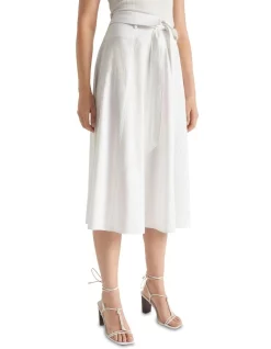 Crafted from a beautiful stretch linen blend, this skirt features a folded waistband and a self tie. Cut in panels, the skirt falls in a fluid, full shape to a midi length. Comfortable and lovely to wear.