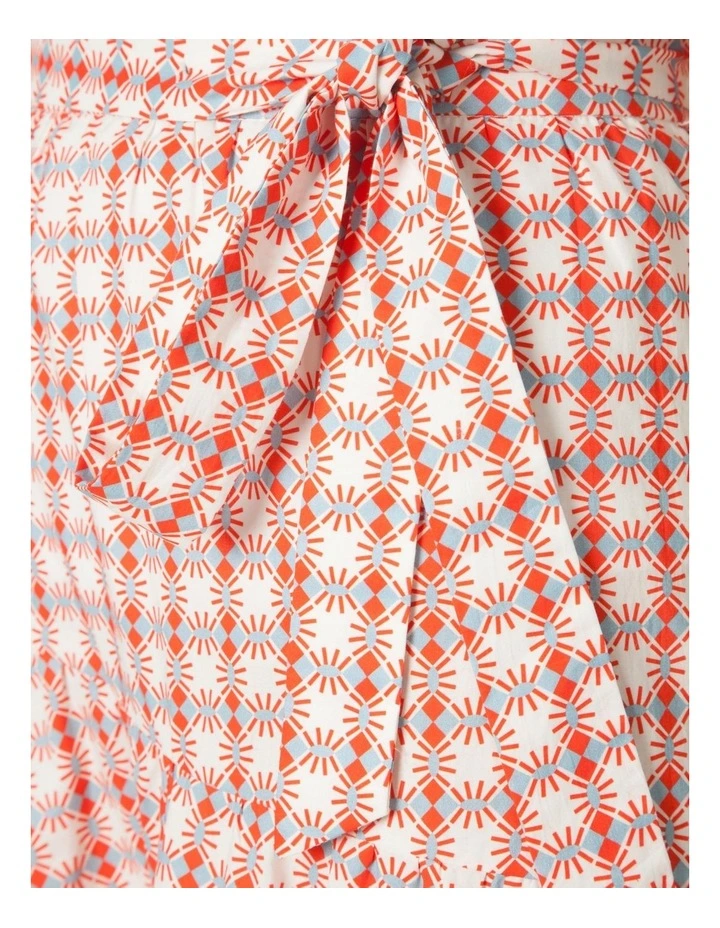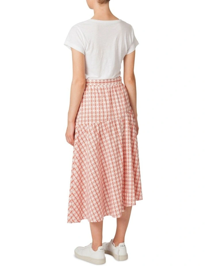 This lightweight cotton printed skirt is a perfect autumn staple, featuring an asymmetrical flounce hem, removable self tie belt and side seam zipper opening. Pairs back with the matching flutter sleeve print top or washed linen v neck tee.