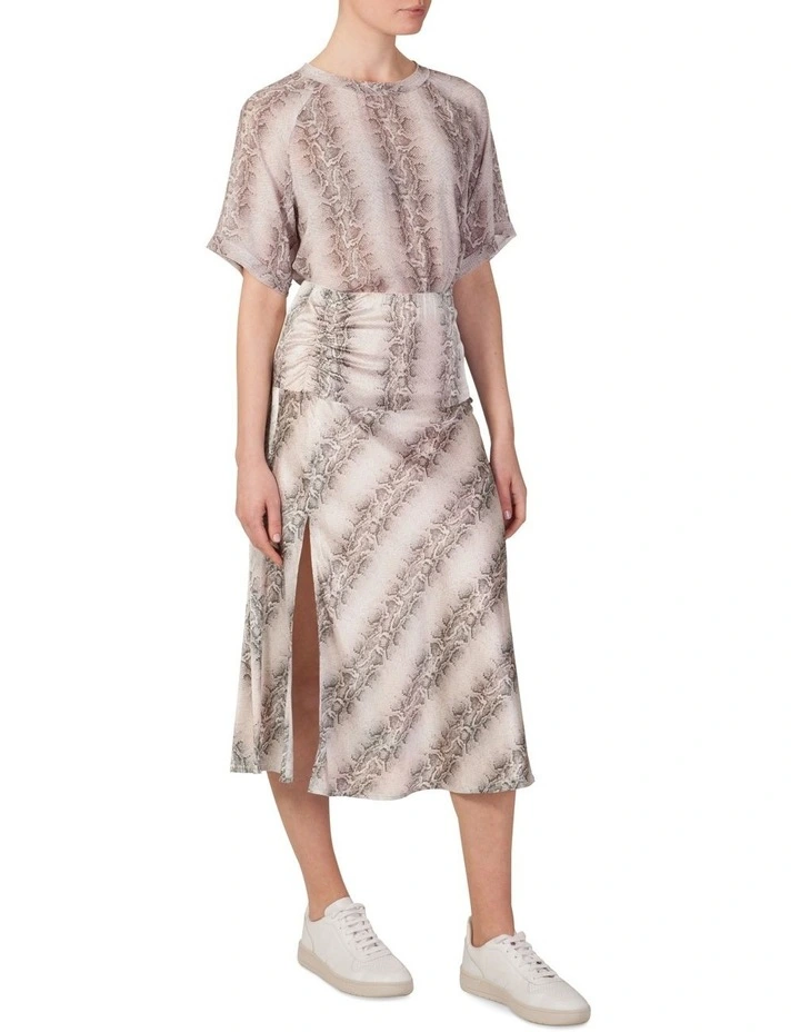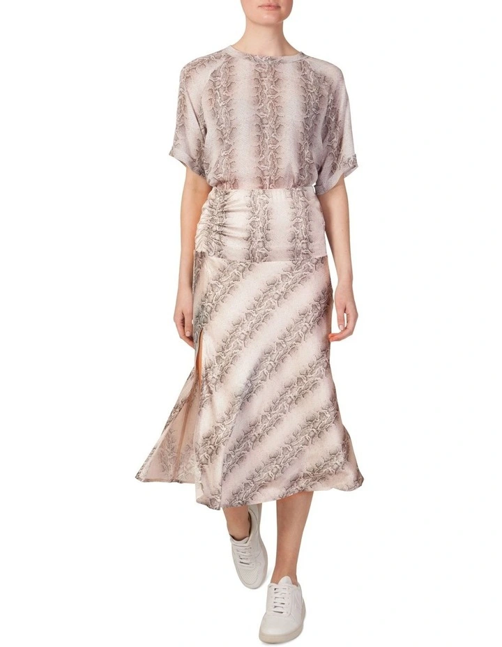 Add a feminine touch in this easy go-to slip skirt in our new neutral python print. Wear to work with a classic white shirt, then add a leather jacket and heels for evening.
