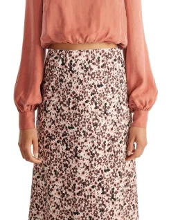 The Alina Bias Midi Skirt by Staple the Label is made with a luxe twill on an exclusive print fabrication. The garment sits above the ankle, and features a high elasticated waistline. Can be paired nicely with the Elena Crop Blouse.