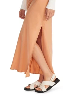 The Elsie Cupro Bias Slip Skirt by Staple the Label is a midi-length garment, featuring an elastic waistband and side split hem. Pair with the matching Elsie Cupro Shirt to complete the look.