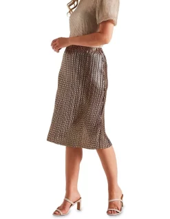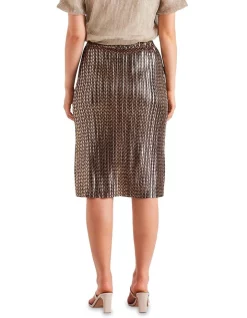 Brighten up your days with the Glow Getter Skirt.Β This midi length skirt is made from a metallic fabric with a pleated design that retains its shape no matter where your day takes you. Pair with the Glamour Top for a stylish and fun party look.