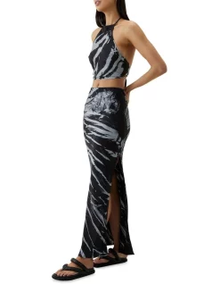 Elegant and versatile, this classic bias maxi skirt in our exclusive hand tie-dye is perfect for any occasion. With its flattering length andΒ edgy side split, theΒ Twist Through Bias Maxi SkirtΒ is complete with theΒ Twist Through Bias Halter Top. Style yours with barely-there heels for your next cocktail event.