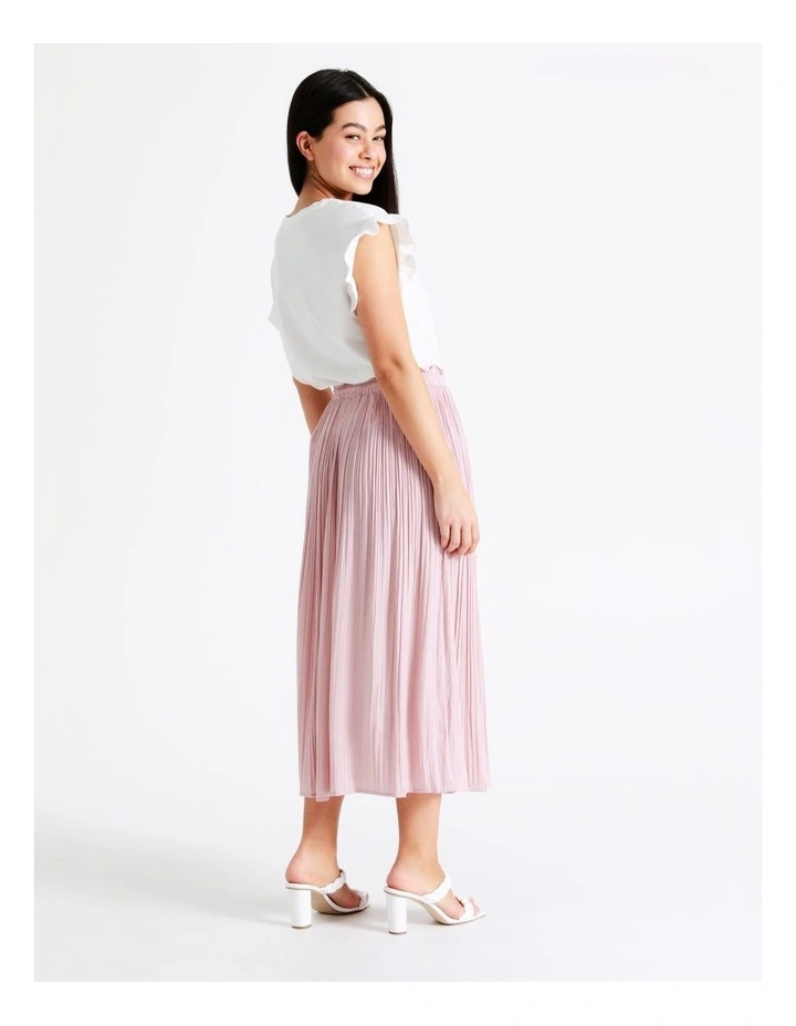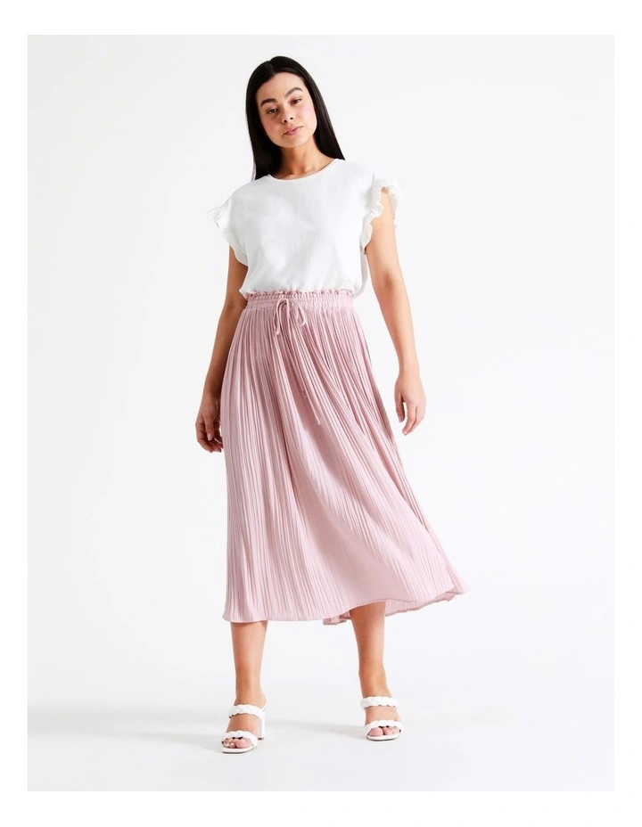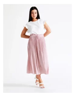 From day to night, this midi skirt is perfect for styling a chic silhouette. With a lightweight and flowing design, this skirt has a pleated finish and mid rise cut. Made for versatile wear, you can wear it with heels or sneakers for a beautiful look.