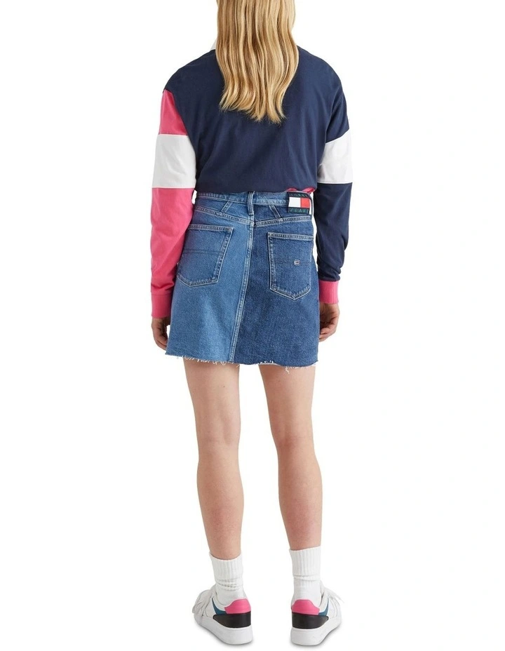 This piece might be 100% recycled, but its a skirt of two halves thanks to eye-catching contrast panels.