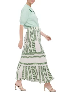 Ladies woven all-over print skirt with small tie string at waist and elasticated waist. Style this piece with a white tank top, wedge heels, beach hat and small clutch for effortless beach day look.