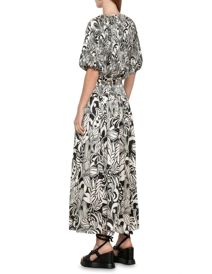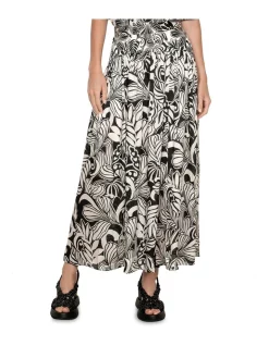 This skirt is a part of our Forward collection. Designed in a crinkle georgette, this drapey maxi skirt features our Ebony Ferns print. Designed to sit on the waist, this style features a curved yoke detail, before falling to a full A-line silhouette. Style yours with our Vanilla Ferns Blouson Sleeve Top for an elevated summer look.
