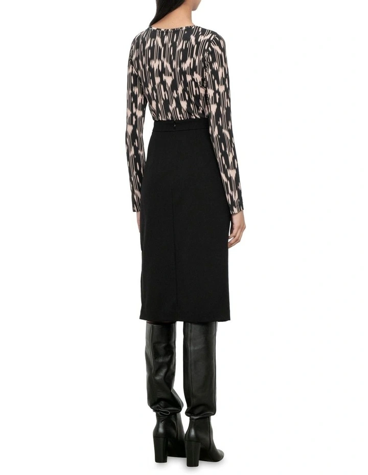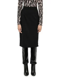 Crafted from a soft stretch suiting fabrication, this classic pencil skirt embodies a streamlined, modern silhouette. Offering a waisted fit with a figure-hugging pencil silhouette and a clean front with darts for fitting. Add a printed top or pop of colour for a contemporary take on work-ready dressing.