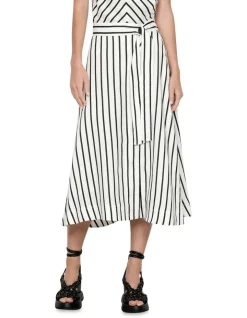 Promo 🀩 Veronika Maine Stripe Linen Wrap πŸ‘— Skirt In White πŸ˜€